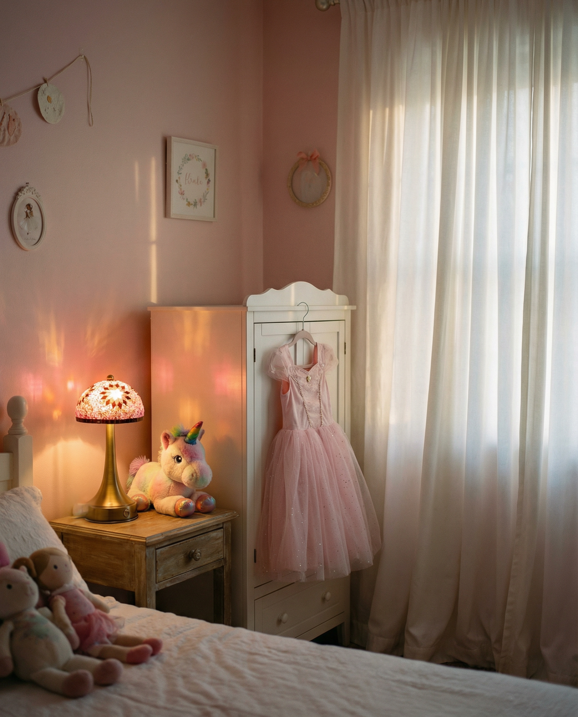 De Parasol LED mozaieklamp in roze brengt een warme zachte en elegante sfeer in elke ruimte. Zodra je de lamp inschakelt ontstaat er een subtiel wauw moment. De roze mozaiekpatronen geven zachte kleurreflecties die meubels muren en decor direct een warme verfijnde uitstraling geven. De sfeer valt bezoekers meestal als eerste op. Niet de lamp zelf maar het gevoel dat hij neerzet. Ontworpen om de kamer niet alleen te verlichten maar te veranderen.